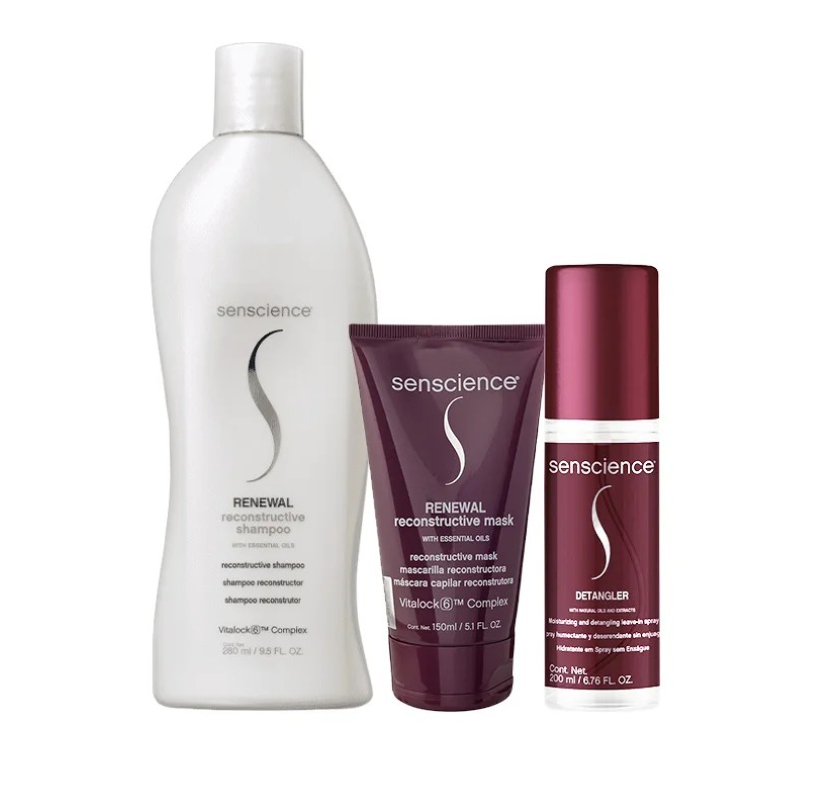 Senscience Shampoo Renewal 280ml Ideal para cabelos danificados, quebradiços e com corte químico Renewal é um shampoo reconstrutor da Senscience que limpa e repara cabelos danificados, quebradiços ou com pontas duplas. Sua fórmula é rica em proteína da seda e proteínas de amêndoas que ajudam a restaurar danos e fortalecer os fios evitando a quebra. Uma combinação de óleos botânicos de argan e macadâmia devolvem ao cabelo danificados maciez e brilho sem provocar peso ao mesmo tempo que protege o cabelo contra danos futuros.